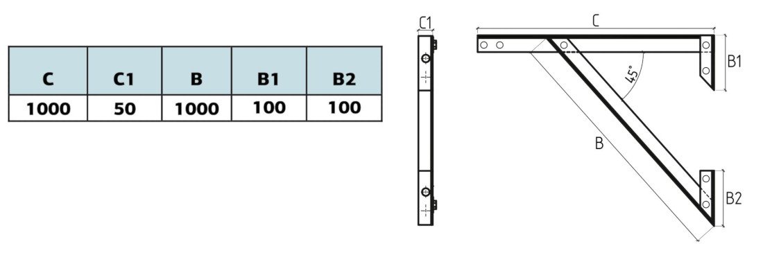 Кронштейн 1000 мм из нержавеющей стали AISI 201 – 0,5 мм