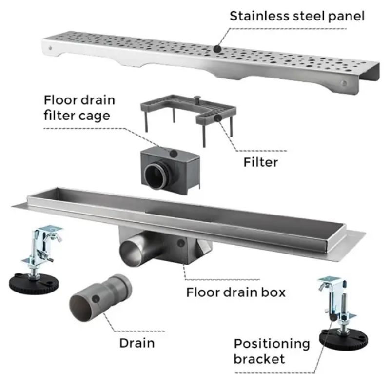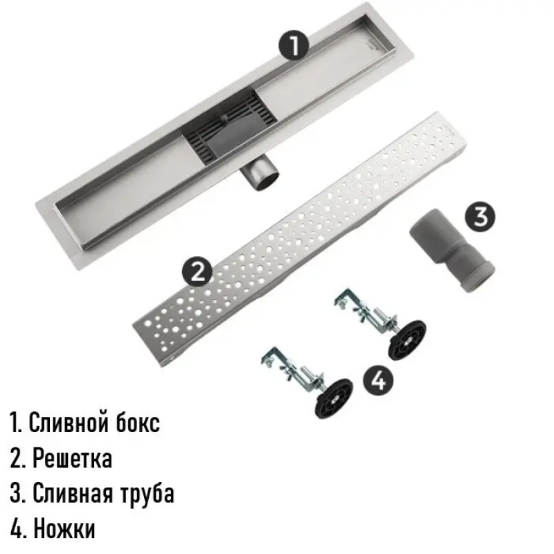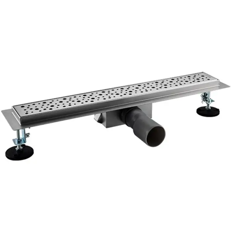 Душовий трап OCEAN 2 70*500мм нержавіюча сталь - відзначається високою пропускною здатністю, здатний вивести до 30-40 літрів води за хвилину. Його конструкція забезпечує ефективний водозбір із великих площ підлоги, що робить його ідеальним для використання в лазнях, саунах та спортивних комплексах. Трап має оригінальний зовнішній вигляд із сіткою, яка додає естетичності, але при цьому не впливає на його функціональність. Завдяки бічним виступам, трап запобігає проникненню води під нього і додає додаткову стабільність при монтажі. Це дозволяє забезпечити герметичність навіть після тривалого періоду без використання. Система комбінованих гідрозатворів мінімізує проникнення неприємних запахів з каналізації в приміщення. Крім того, трап оснащений фільтрами, які вловлюють сміття, що значно знижує ризик засмічення та дозволяє підтримувати його в робочому стані з мінімальними зусиллями.