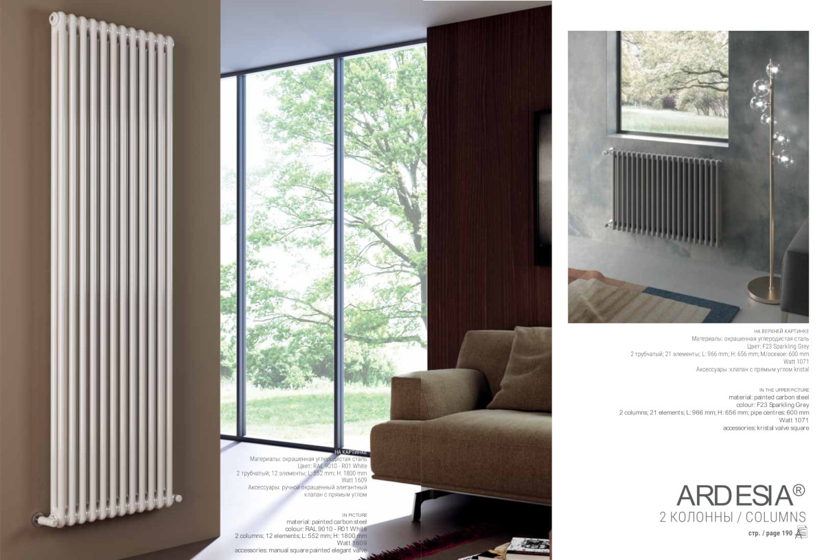 Трубчасті радіатори Cordivari Ardesia – це класичні секційні опалювальні прилади трубчастого типу. Безпека та гігієнічність радіатора забезпечуються трубчастою формою секцій, які мають заокруглені кути. Так, Cordivari Ardesia може бути використаний як у стандартних приміщеннях, так і в установах з особливими вимогами до гігієни та безпеки, такими як дитячі заклади, медичні та інші.