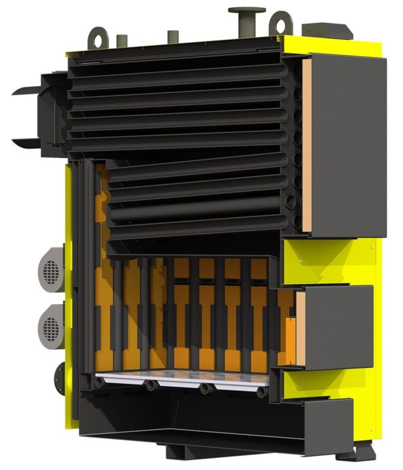 Котел твердопаливний KRONAS HEAT MASTER SH 150 кВт - це котли високої потужності (від 99 кВт до 1 МВт) із теплообмінником жаротрубного типу та шамотованою камерою топки. Дана серія котелів спроектована для опалення об'єктів з великою площею від 1000 кв. до 10000 м. кв. Паливом для котлів цієї серії є дрова та шматкове паливо на основі деревини. Завдяки шамотованій топці в котлах даної серії деревина згорає з дуже високою ефективністю. У цьому показник емісії шкідливих речовин має дуже низький рівень.
