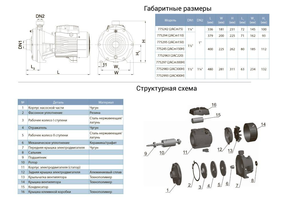 Насосна частина та електродвигун: