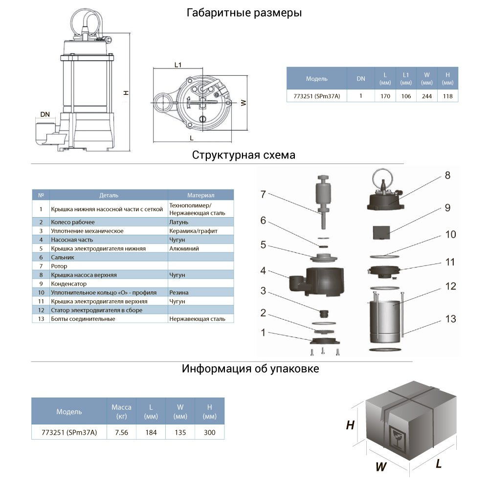 | Висота упаковки, мм | 300 | |