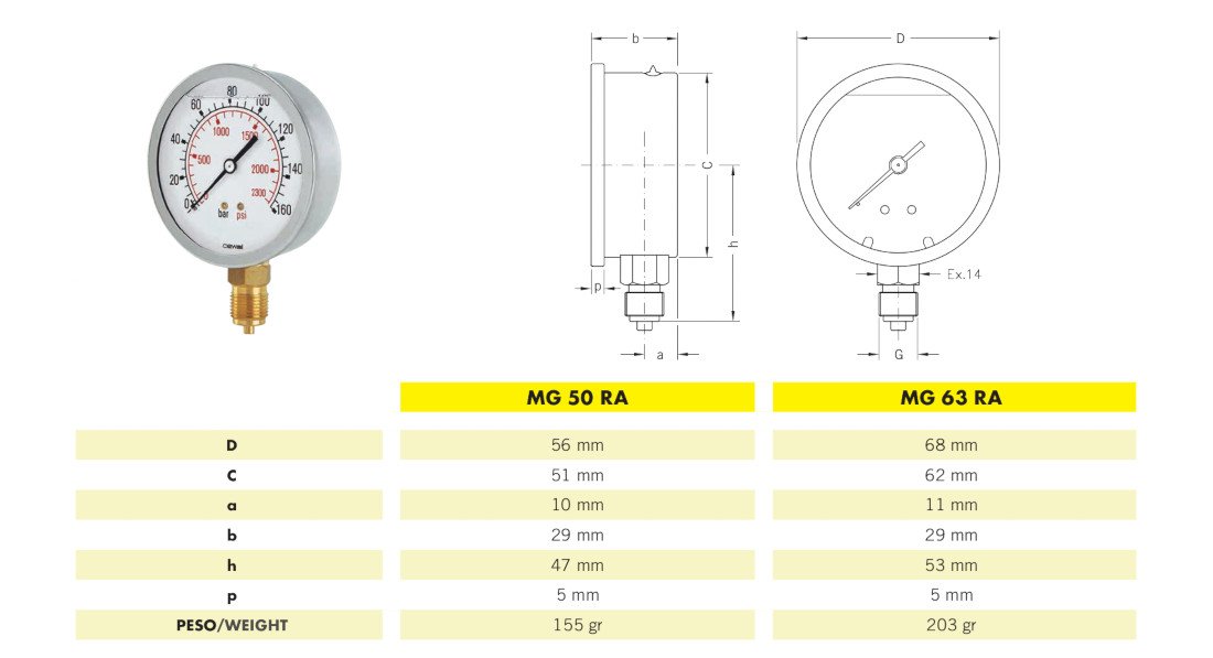 Гліцеринові манометри CEWAL призначені для вимірювання тиску за умов підвищеної вібрації. Вони мають сталевий (AISI 304) герметичний корпус, полікарбонатне скло. Манометр заповнений гліцерином подвійного очищення для гасіння вібрацій, перепадів тиску та ударів. Вимірювальний елемент - трубка Бурдон з мідного сплаву. Клас точності 1 - 1,6 - 2,5 відповідно до стандарту UNI EN 837-1.