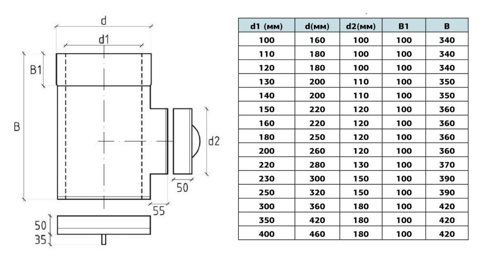 Ревізія димоходу утеплена (сендвіч) призначена для забезпечення можливості обслуговування (контрольного доступу) та очищення димоходу. У комплекті заглушка з ручкою та лійка.